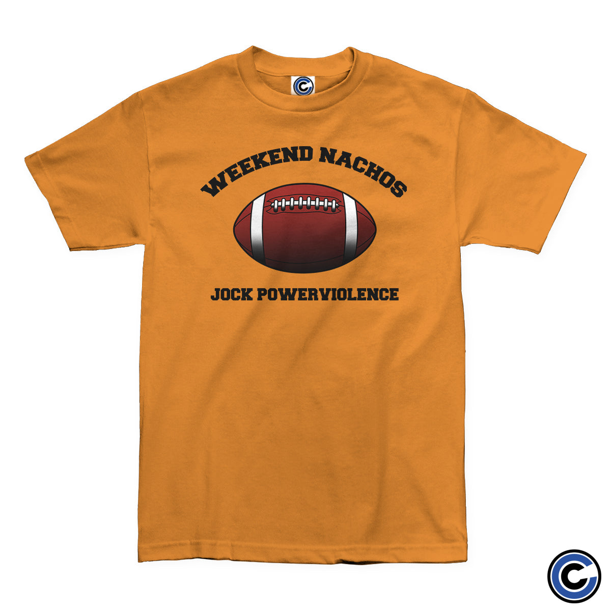 Printed on safety orange Gildan G500.