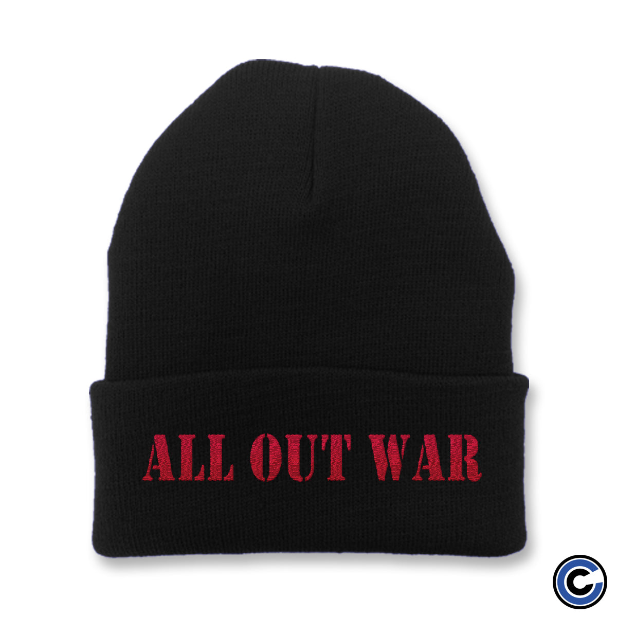 Embroidered on black Yupoong 1501 beanie.